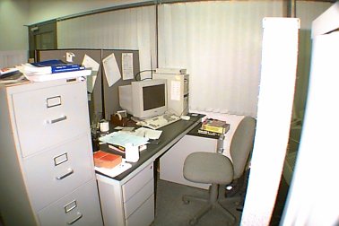 | This was where I spent most of my time. The place was sort of messy. However, it was well protected by partitions (The two gray vertical "walls"). The partitions were necessary because the Glass Room was an important passage from the Speech Lab to the Image Lab or vice versa. They were also "necessary" so that no one knew what I was doing. |